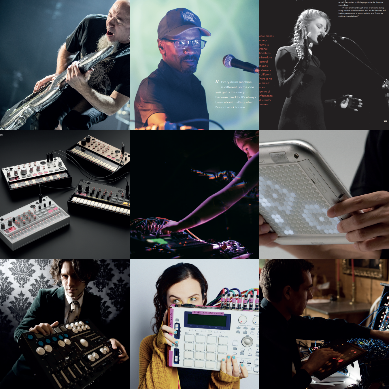 Modern instrument designs are a strange and beautiful landscape, and the pioneers who explore it combine a spirit of adventure with a sharp eye on the turning tides of technology. Be inspired by insightful interviews with Dorit Chrysler, Suzanne Ciani, Richard Devine, DiVINCi, Laura Escudé, Imogen Heap, Larry Heard, Moldover, Jordan Rudess, Skinnerbox, and others.