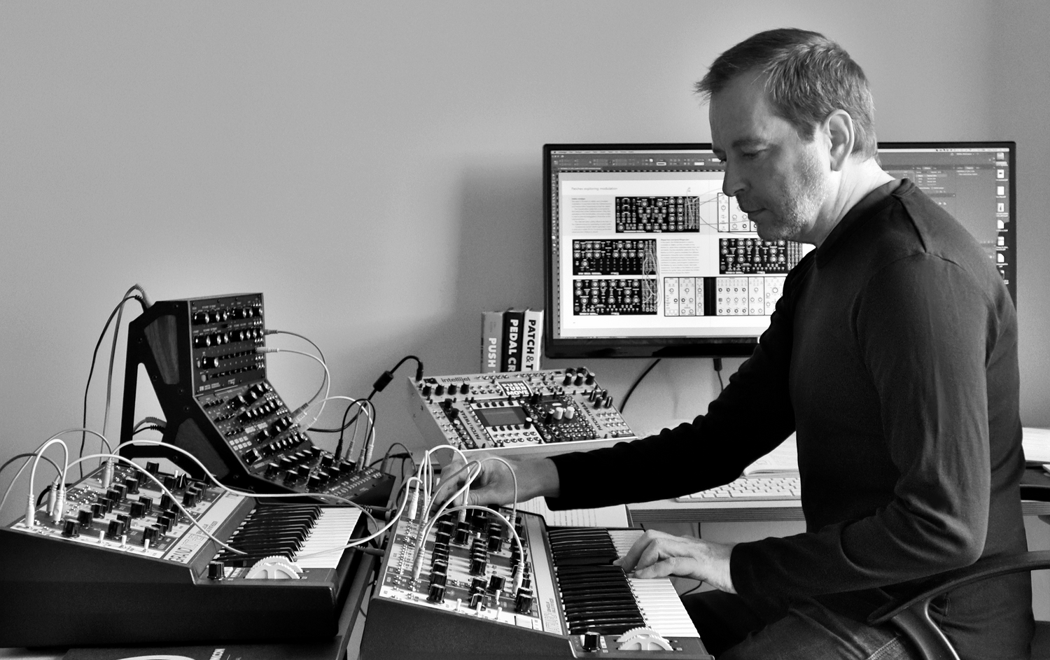 As an author, electronic musician, and designer, Kim founded Bjooks in 2017 based on his passion for music technology, creativity, design, and human interaction. In the wake of the success of his first international book, PUSH TURN MOVE in 2017, he went on to initiate, co-author or author other titles at Bjooks, while designing them all, and expanding the company into international success. Besides the titles published at Bjooks, Kim has previously written Danish books on visual design, and created ambient albums under the project name Dreamhub. When not creating books, he can be found playing occasional gigs, patching his modular, programming music machines, or at trade shows and synth enthusiast events around the world, from NAMM in California or Knobcon in Chicago, to Superbooth in Berlin. Kim likes to pet dogs on their cute heads, read books, and learn new things such as surfing, which he enjoys in the North Sea off the west coast of Denmark.